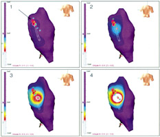カテーテルアブレーションは、不整脈を治療する方法のひとつで、カテーテルを用いて不整脈の原因そのものをなくしてしまう治療法です。体表近くの静脈(足の付け根や肘など)から先端に電極のついた細長い管(カテーテル)を挿入し、心臓の中に先端を届かせた後、不整脈の原因となっている場所や電導路を特定、その部分を高周波電流で焼いてしまう治療法で、1982年に海外で報告され、1990年から日本でも行われるようになりました。日本ではまだ20年ほどの歴史しかありませんが、その進歩は大きなものがあります。 図-2の左の写真は体外から挿入された電極カテーテルの様子をレントゲン透視で見たものです。最近はコンピューター技術の進歩が著しく、心臓の中の電気刺激の伝導する様子を3次元画像で表示しながら治療を行っています。図-2の右がそのコンピューター画像です。 ■治療の対象となる不整脈の種類 全ての不整脈がカテーテルアブレーションの対象となるわけではありません。基本的に、放置しても命に別状はなく、生活上大きな支障とならない場合は行いません。対象となることが多いのは以下のものです。 (1)発作性上室性頻拍 房室結節の中や、心房心室の境目に余分な伝導路があり、電気刺激が一か所を旋回してしまって起こるものです。突然、心拍数が120/分以上になり、ひどい動悸を起こします。発作がおさまるときにはスイッチが切れるように動悸も突然消えてしまいます。いくつかの種類がありますが、発作の頻度が高く、生活上で支障がある場合にカテーテルアブレーション治療の適応となります。一般に成功率は90%を越えています。 (2)心房粗動 心房の中に電気刺激が旋回する部位があり起こるものです。不整脈を起こしたときやそれが停止するときに血栓ができて脳梗塞の原因になることがあります。カテーテルアブレーションの良い適応です。特殊なタイプでなければ成功率は99%以上といわれています。 (3)心房細動 心房粗動と似ていますが心房粗動よりも脈拍の不整が目立ちます。これも心房内に血栓ができて脳梗塞の原因になることがあります。全ての心房細動が適応ではありませんが、最近ではカテーテルアブレーションが盛んに行われるようになってきました。成功率が心房粗動よりは低く、70〜80%あたりのようです。 (4)その他 場合により、命にかかわる不整脈である心室頻拍などにもカテーテルアブレーションが行われることがあります。 ■最後に 不整脈は種類が多く、放置しても問題ない軽度のものから、脳梗塞の原因になりうる中程度のもの、命の危険に直結する重症のものまで、実にさまざまです。治療内容も患者さんごとに異なります。まずは医師にご相談ください。 |